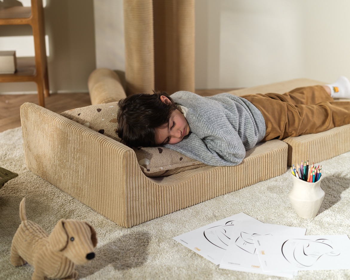 Mit seinem weichen, nachhaltigen Breitcord-Stoff fühlt sich der Flipster nicht nur unglaublich angenehm an, sondern bringt auch eine Extraportion Gemütlichkeit in jedes Kinderzimmer. Dank seiner cleveren Konstruktion aus drei separaten Elementen kann er spielend leicht umgestaltet werden – ideal für Kinder bis zu 9 Jahren oder 130 cm Körpergröße. Sein verstellbares Rückenteil sorgt für extra Komfort, während das leichte Design und der abnehmbare, waschbare Bezug für eine unkomplizierte Handhabung im Familienalltag sorgen.